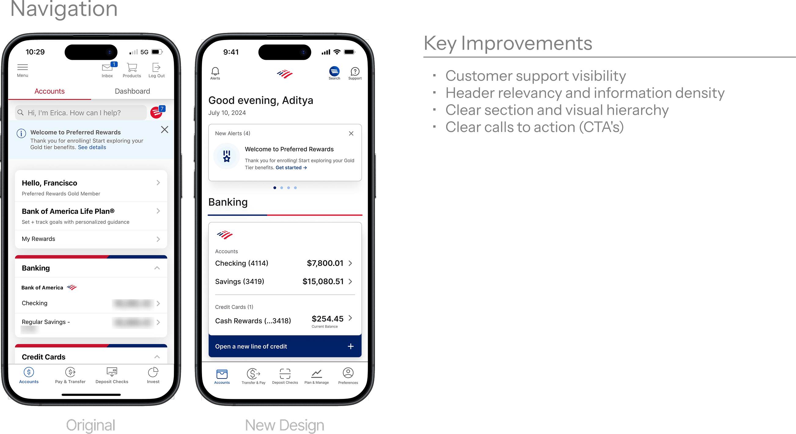 Improve navigation throughout the app, rethinking information architecture around the areas of improvement identified in the previous step of research.